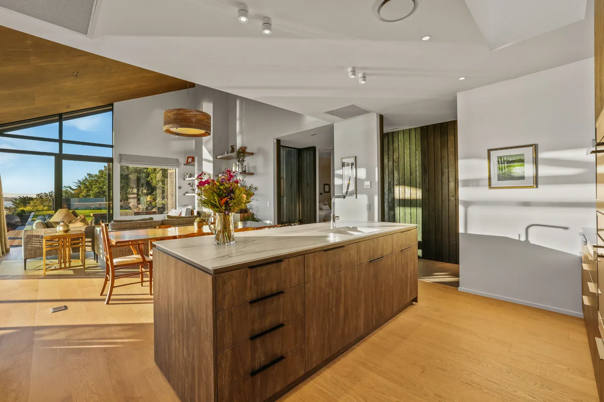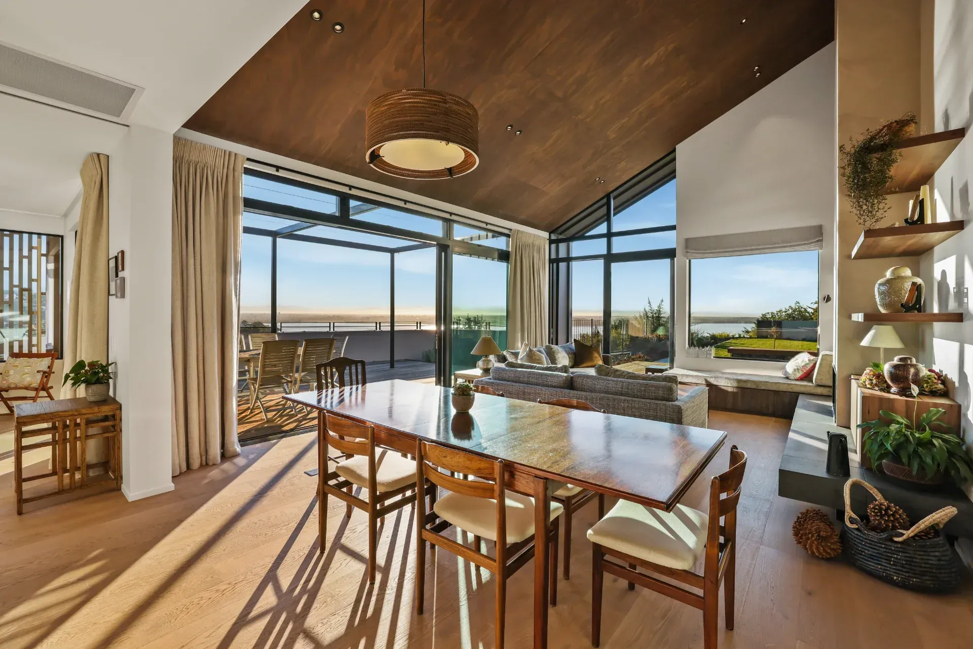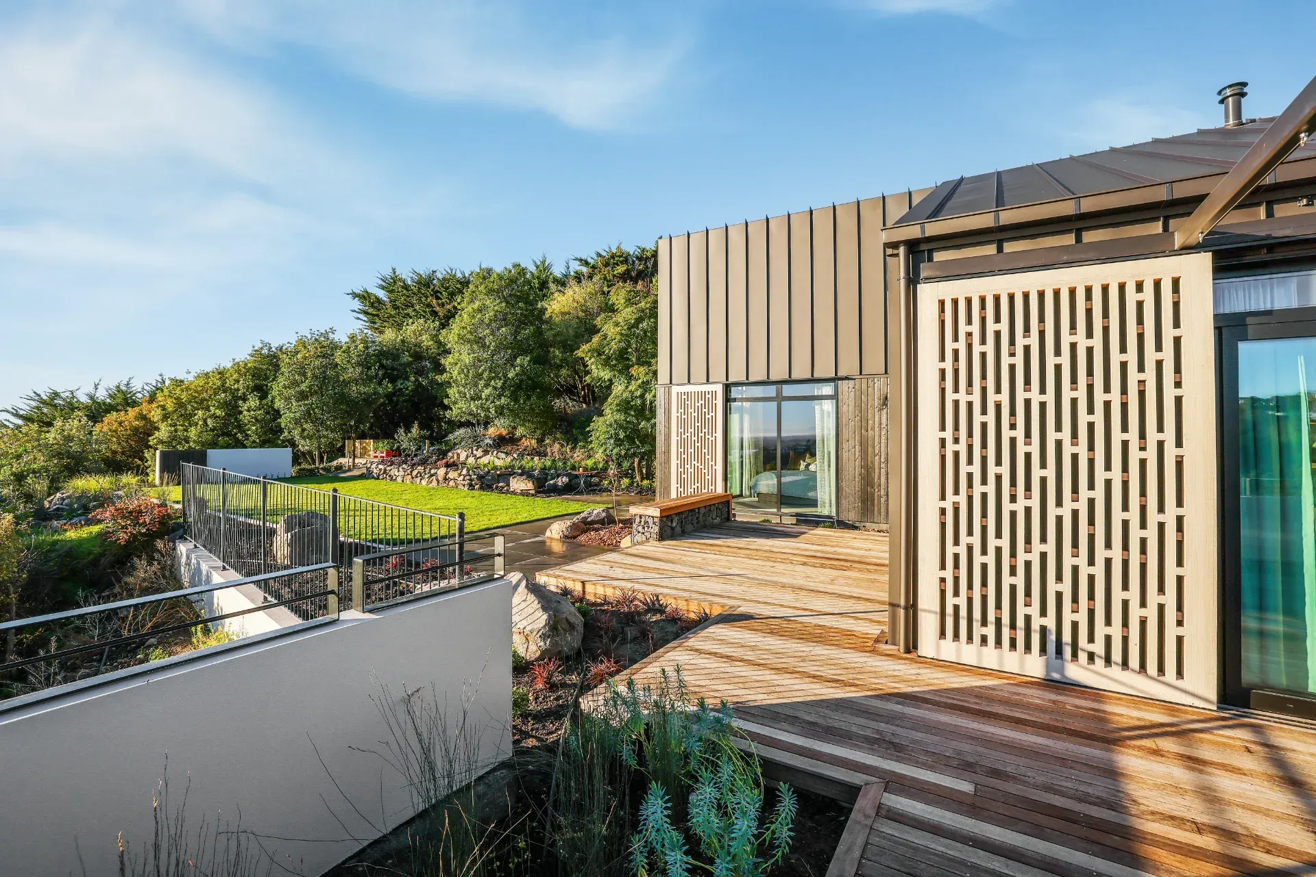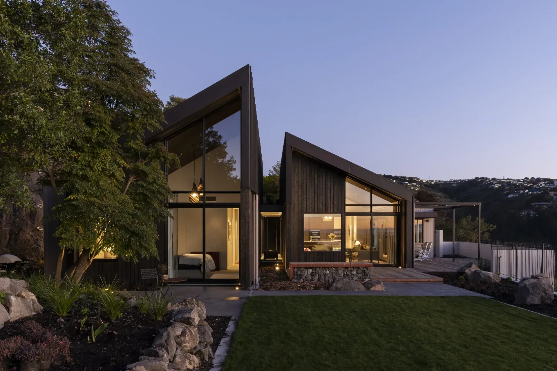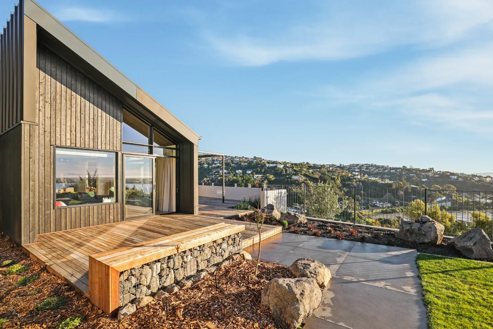 A complete rebuild following the 2011 Christchurch earthquakes, this 224sqm, three-bedroom home was architecturally designed to capture exceptional views overlooking Christchurch City. A sophisticated blend of vertical lines and an angled roof creates a seamless indoor-outdoor flow.
