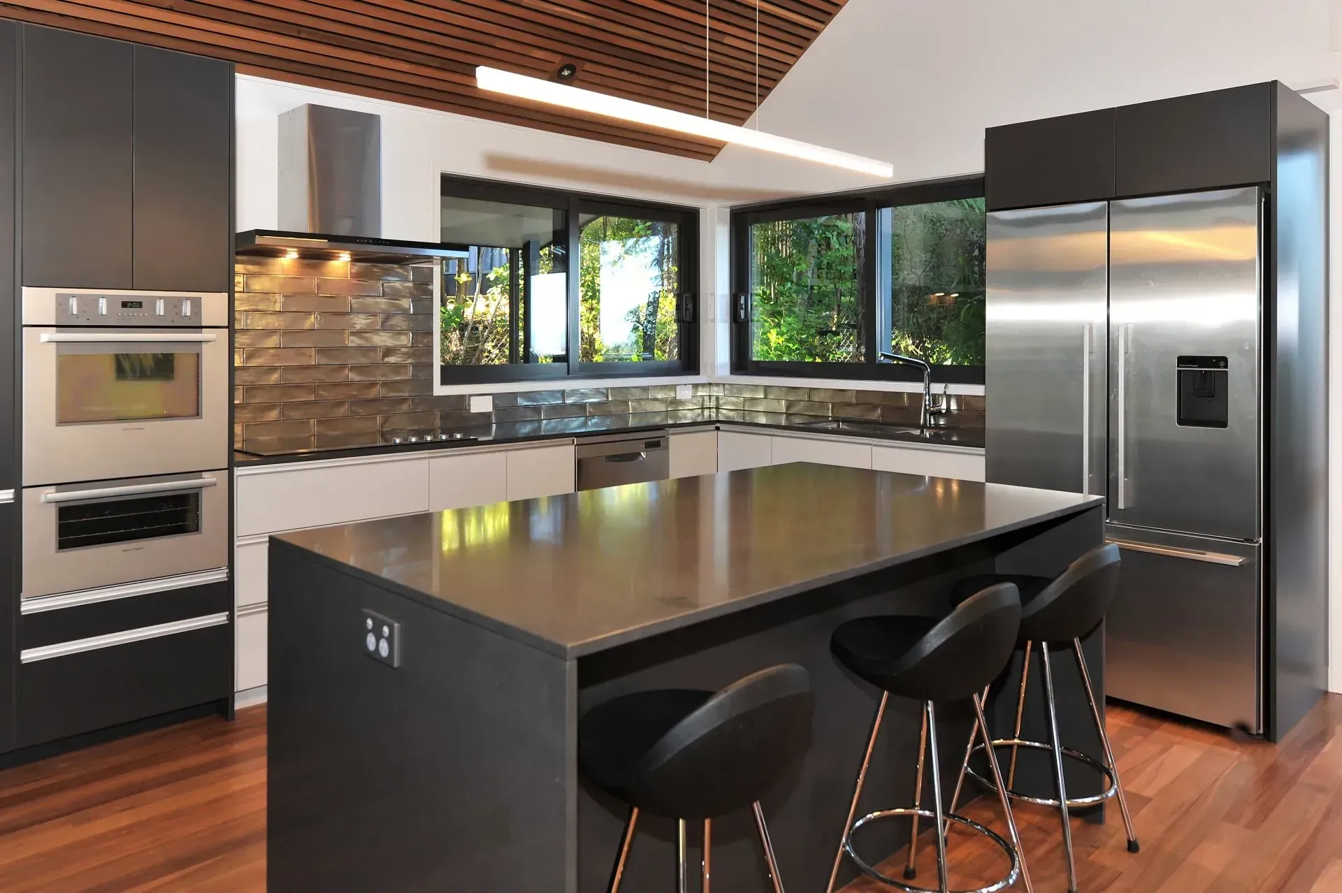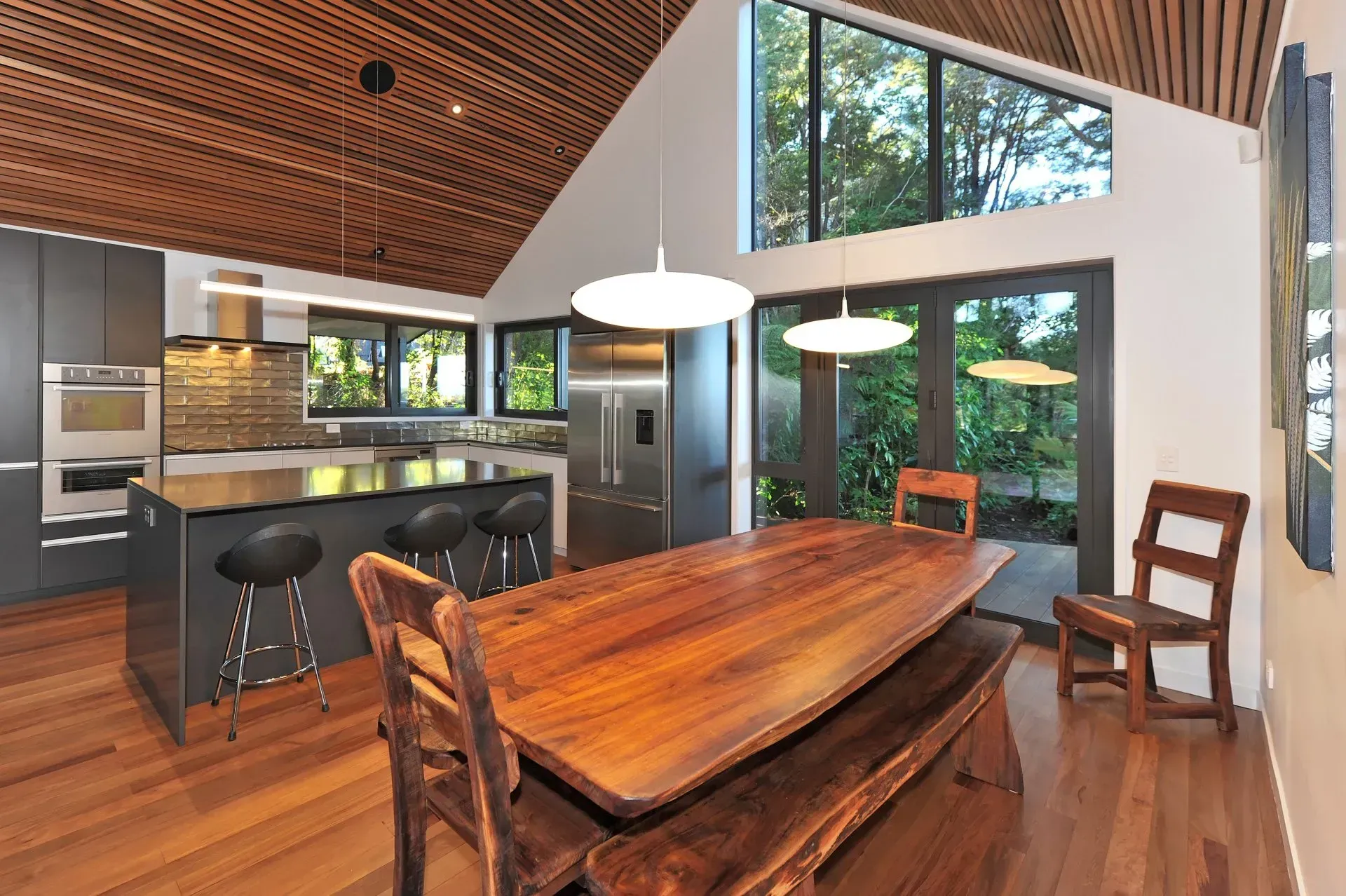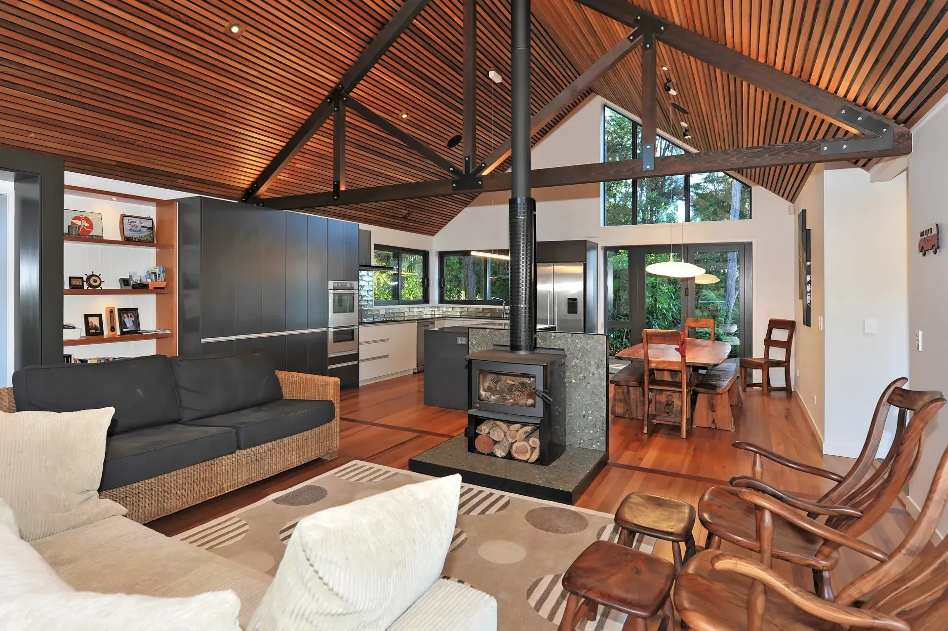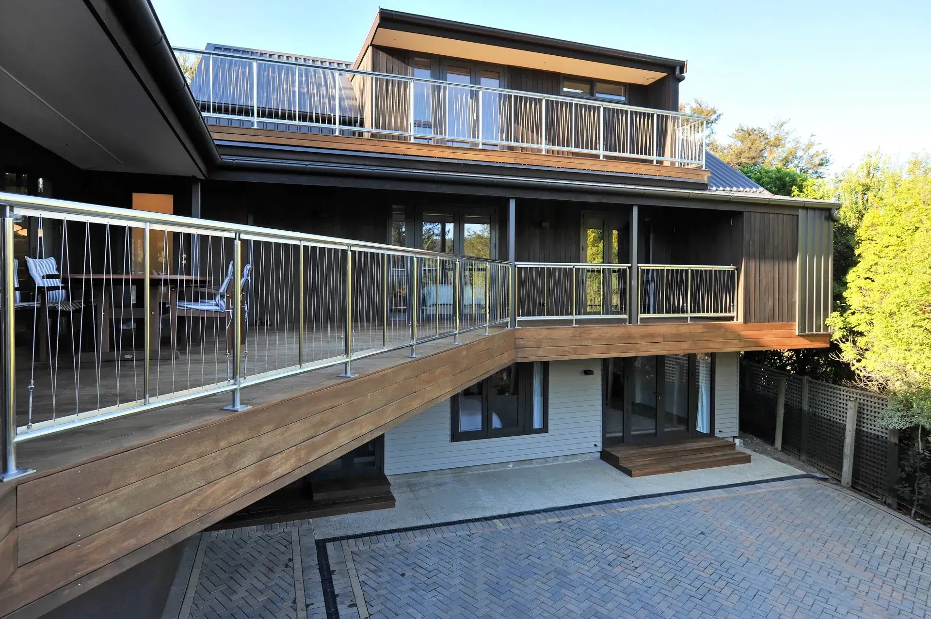 Focus worked closely with the architect and client to finalise the design of this extensive renovation, which completely transformed this three-level holiday home into a chalet-like haven. Focus managed the tender process and worked alongside the client to appoint Dan Anderson Building to the contract. The project was undertaken on a steep site and included extensive excavations to incorporate a self-contained two-bedroom apartment and new double garaging. The upper level was generously extended to accommodate the master suite and two private deck areas. While existing flooring and exterior framing were retained to preserve the home’s original character, structural steel beams and posts were installed to support cantilevered decking.