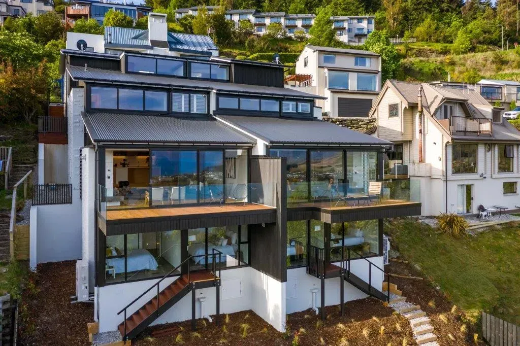 This newly built, high-spec architectural duplex dwelling consists of three-bedrooms, two-bathrooms, split-level and open plan living. Built on steep terrain, much thought, planning and engineering skill was considered when building this bespoke property. Clever interior design and planning has resulted in panoramic views of Queenstowns’ Lake Wakatipu and the picturesque mountain surrounds.